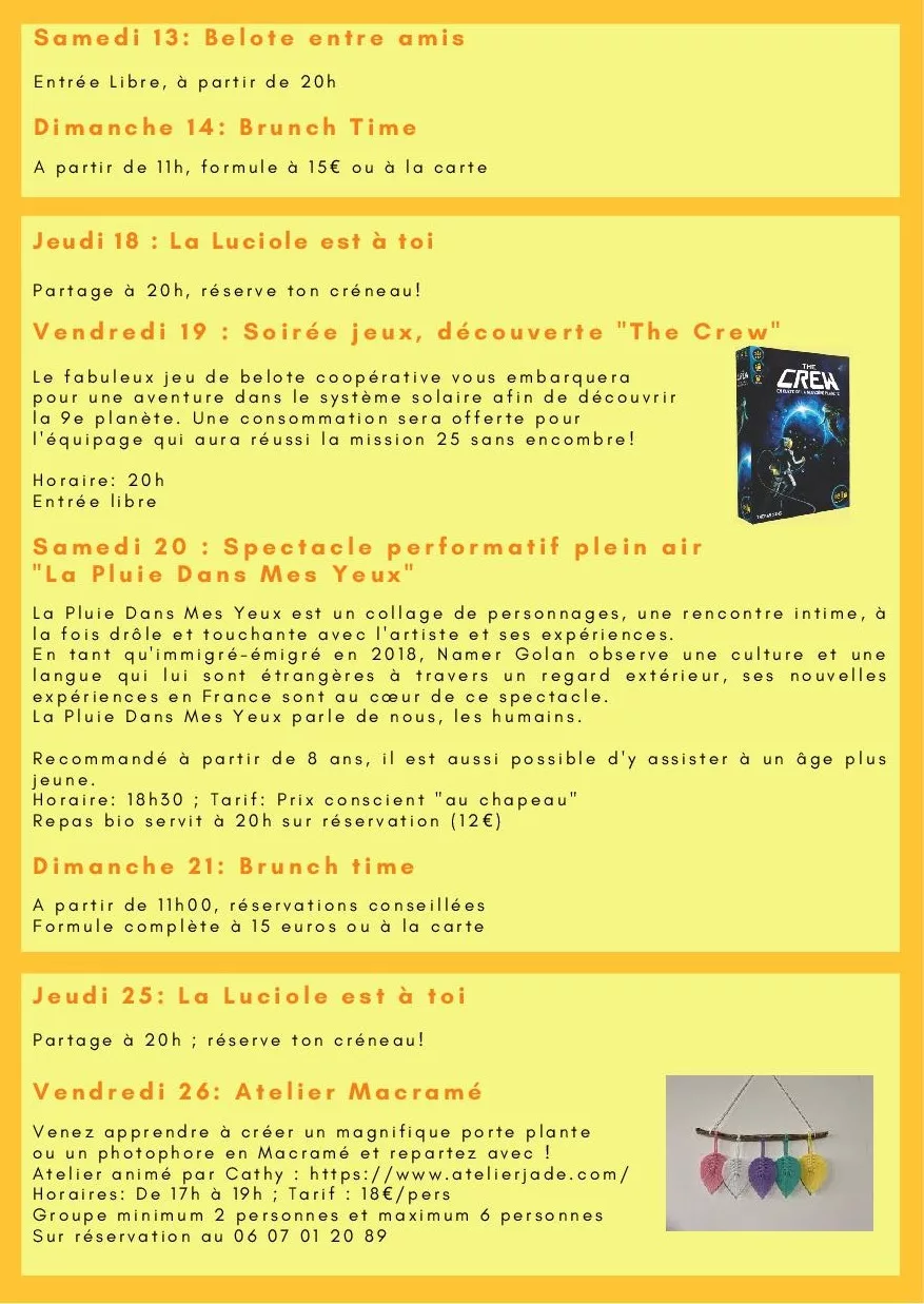 Le but de ces soirées – qui seront proposées tous les jeudis – est de mettre à l’honneur les adhérents et leurs talents!